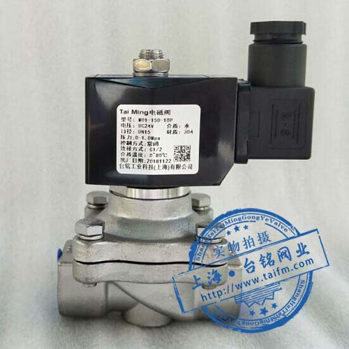 臺銘工業科技(上海)有限公司是知名的水用電磁閥廠家,引進國外一體化CNC加工設備,生產的水用電磁閥、不銹鋼電磁水閥、防爆水用電磁閥、高壓水用電磁閥等結構標準,精度高,外觀漂亮,并且以優惠的價格讓利客戶,深受用戶好評,上海臺銘水用電磁閥適用于以水或液體為工作介質,可自動化控制或遠程控制水、油、液體等工作介質管路的通斷,常壓水用電磁閥本閥采用橡膠密封,高壓水閥則采用四氟或金屬硬密封具有使用范圍廣,啟閉迅速,可靠性高等特點。